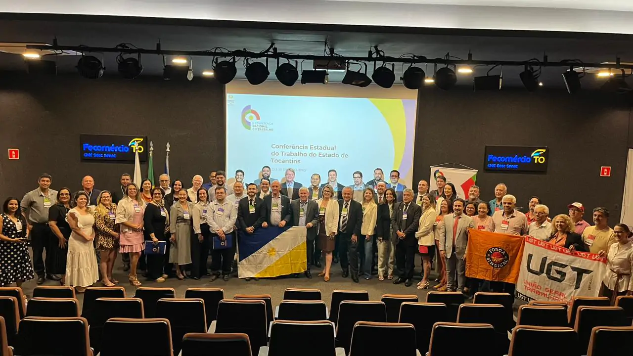 Nesta terça-feira, 30, a Prefeitura de Palmas participou da etapa estadual da II Conferência Nacional do Trabalho (CNT), realizada no auditório da Federação do Comércio de Bens, Serviços e Turismo (Fecomércio), na Capital. O evento reuniu autoridades estaduais, municipais, federais e representantes de trabalhadores e empregadores para discutir os desafios do mundo do trabalho, com foco nas transições tecnológica, digital, ecológica e demográfica.