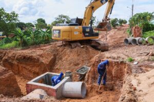 Na quarta-feira, 21, equipes seguiram com serviços de drenagem e terraplanagem na Rua 40, conforme o cronograma estabelecido para o setor