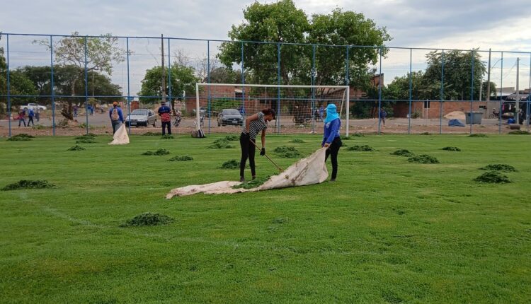 Foram necessários os serviços de capina, rastelagem, remoção de terra, varrição, pintura manual e mecanizada do meio-fio nas vias no entorno do campo e paisagismo para decorar e harmonizar a pracinha. Já o gramado recebeu irrigação com caminhão-pipa para se adequar à prática esportiva.