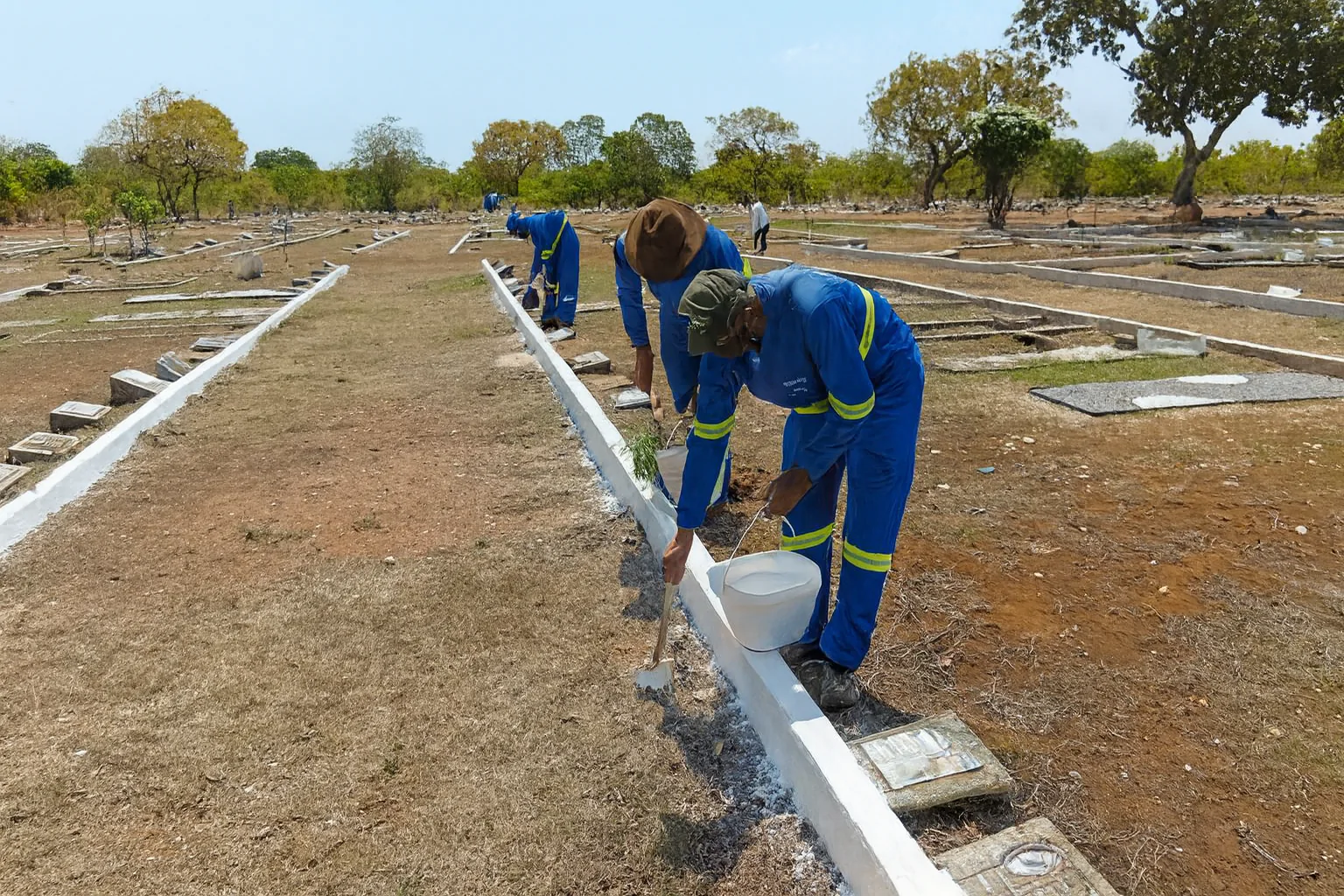 A Prefeitura de Palmas, por meio da Secretaria Municipal de Zeladoria Urbana, intensificou nesta semana os trabalhos de manutenção e paisagismo no Cemitério Jardim da Paz, localizado próximo à TO-020, na saída da Capital. As ações fazem parte dos preparativos para o Dia de Finados, que será celebrado neste domingo, 2 de novembro. A força de trabalho foi ampliada de 20 para 40 servidores, que realizam serviços de varrição, rastelagem, pintura manual de meio-fio e revitalização dos jardins do local.