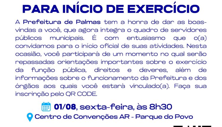 Prefeitura recebe novos servidores da Educação de Palmas com cerimônia de boas-vindas e formação nesta sexta-feira, 1º | Prefeitura Municipal de Palmas