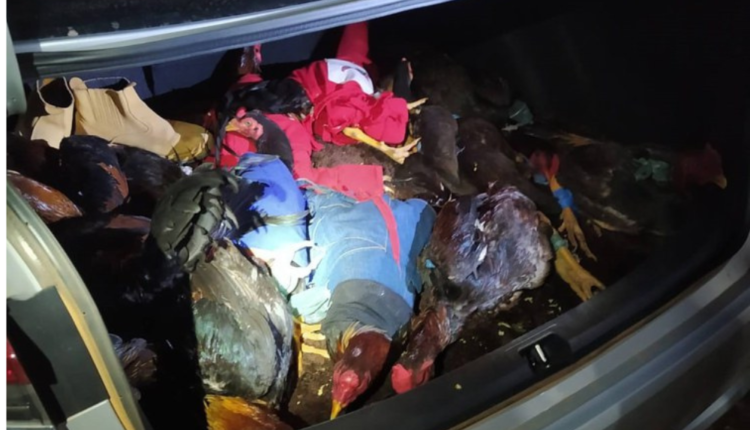 Agentes encontraram os galos em situação de maus-tratos dentro de um veículo