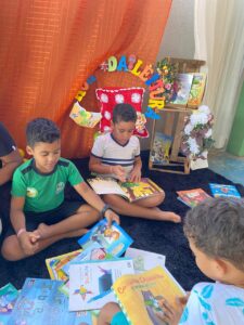 Em várias etapas do projeto, as crianças foram convidadas a exercitar habilidades de leitura e escrita através de vivências que despertaram a imaginação, a escuta atenta e o prazer pela leitura, dentro e fora da sala de aula.