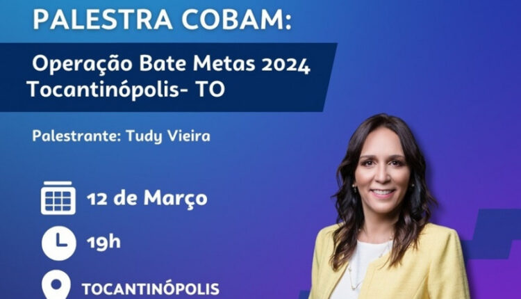 O Sebrae Tocantins realiza em Augustinópolis e Tocantinópolis, respectivamente, nos dias 11 e 12, o evento “COBAM: Comando de Operações Bate Meta”, a partir das 19 horas. Durante as palestras, os empresários terão acesso conteúdos de capacitação para inspirar líderes e motivar colaboradores a alcançarem seus objetivos de forma consistente e eficaz.
