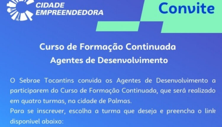 Com o objetivo de capacitar os Agentes de Desenvolvimento (AD’s) enquanto líderes no processo de desenvolvimento econômico de seus territórios, o Sebrae Tocantins abre quatro novas turmas de formação continuada. A expectativa é formar 103 atores que atuarão na promoção de políticas públicas dos 89 municípios do Estado que possuem a Sala do Empreendedor.