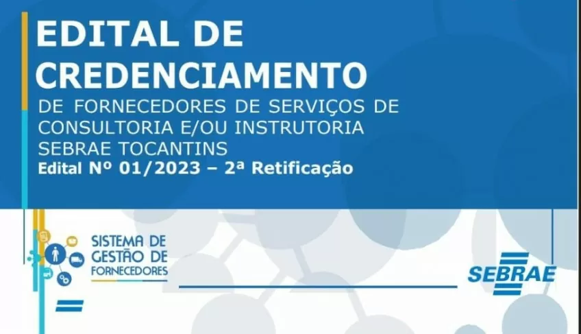 O Sebrae Tocantins está com as inscrições abertas para pessoas interessadas em se credenciar como consultores e instrutores da instituição. O edital é permanente e o credenciamento deve ser realizado no site www.sebraeto.com.br. Todo o processo de cadastramento é realizado de forma remota e gratuita.