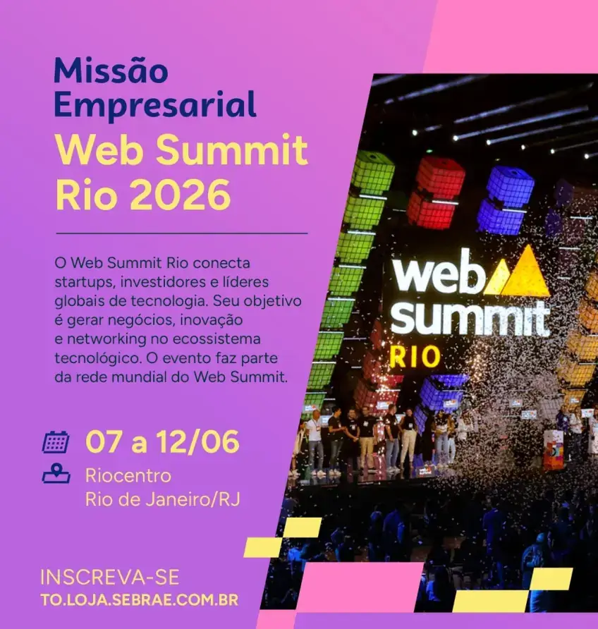O Sebrae Tocantins está com inscrições abertas, até o final de abril, para a missão empresarial que levará pequenos negócios do Estado ao Web Summit Rio 2026, um dos maiores eventos de tecnologia e inovação do mundo. A iniciativa oferece vagas limitadas e mira empreendedores interessados em ampliar conexões, acessar tendências globais e fortalecer a competitividade no mercado.