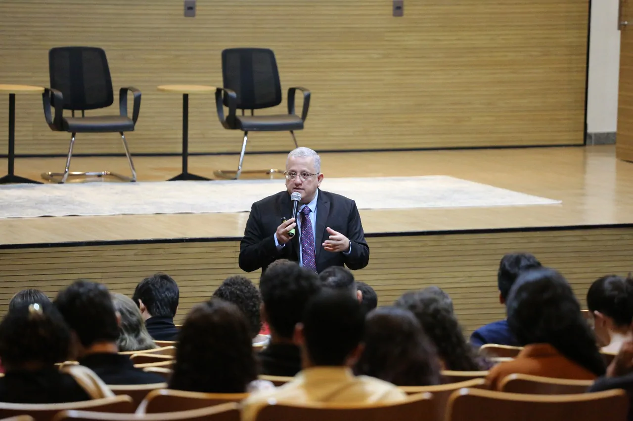 A acadêmica Ana Laura de Oliveira, que participou da atividade, reforçou a relevância do debate: “Foi uma palestra superimportante. O professor Tharsis trouxe um ponto de vista muito legal sobre sistema penal e IA, e a gente precisa desse embasamento jurídico para manusear a ferramenta. Foi muito enriquecedor para nós, porque o Direito está cada dia mais tecnológico e precisamos nos adaptar”.