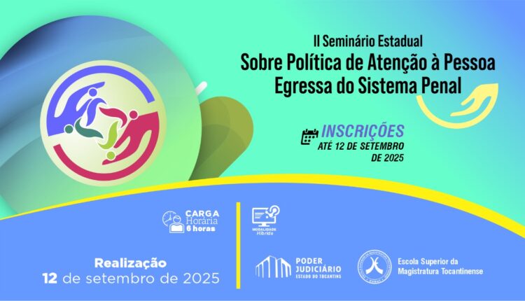 A Escola Superior da Magistratura Tocantinense (Esmat) realiza, nessa sexta-feira (12/9), o II Seminário Estadual sobre a Política de Atenção à Pessoa Egressa do Sistema Penal. O evento ocorre a partir das 9 horas, no auditório da Esmat, com transmissão ao vivo para todas as comarcas do Estado e demais regiões.