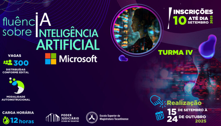 Os servidores da Prefeitura de Palmas têm vagas exclusivas para curso autoinstrucional FluêncIA, ofertado pela Escola Superior da Magistratura Tocantinense (Esmat), em parceria com a Microsoft. Interessados podem inscrever até esta segunda-feira, 15. O curso é voltado ao estudo da Inteligência Artificial (IA) e é destinado a servidores do Poder Judiciário Tocantinense e de órgãos parceiros, como Prefeitura de Palmas, por meio da Secretaria de Administração e Modernização.