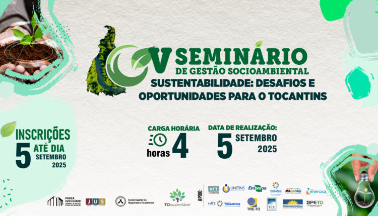 Com o tema “Sustentabilidade: Desafios e Oportunidades para o Tocantins”, o V Seminário de Gestão Socioambiental será realizado nessa sexta-feira (5/9), das 8h às 12h, no auditório do Tribunal de Justiça do Estado do Tocantins (TJTO), em Palmas. O evento também será transmitido ao vivo para os(as) inscritos(as) que não residem na Capital.